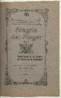 Alegría del hogar : recopilación de las hermosas canciones de actualidad. [Santiago] : Imp. y Enc. "La Economía", 1918. 16 páginas ; 13 cm. .