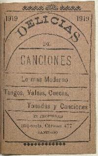 Las Canciones de moda para 1919 : recopilación escojida para piano, guitarra i demás instrumentos. Santiago : Imprenta Carmen, [1919?] 31, [1] páginas : ilustraciones ; 13 cm. .