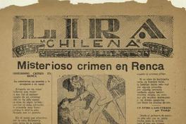 Misterioso crimen en Renca. [Santiago, Chile] : [Editor no identificado], [entre 1930 y 1950] ([Santiago] : Imprenta Varela) 1 hoja : ilustraciones ; 39 x 28 cm. .