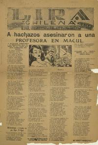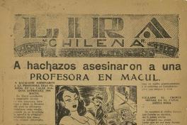 A hachazos asesinaron a una profesora en Macul. [Santiago, Chile] : [Editor no identificado], [1947?] ([Santiago] : Imprenta Varela) 1 hoja : ilustraciones ; 39 x 27 cm. .