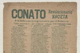 Conato : revolucionario nacizta : fué sofocado enérgicamente por el Gobierno. [Concepción] : [Editor no identificado], [1938?] (Concepción : Imprenta "El Esfuerzo") 1 hoja ; 31 x 20 cm. .