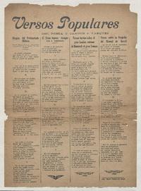 Versos populares del poeta y cantor J. Vasquez. [Antofagasta] : [Editor no identificado], [1945?] (Antofagasta : Imprenta "Rossi") 1 hoja ; 38 x 29 cm. .