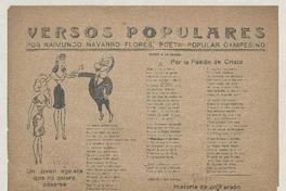 Versos populares / por Raimundo Navarro Flores. [Chile] : [Impresor no identificado], [entre 1890 y 1956] 1 hoja : ilustraciones ; 38 x 28 cm. .