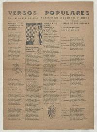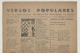Versos populares / por Raimundo Navarro Flores. [Chile] : [Impresor no identificado], [entre 1890 y 1956] 1 hoja : ilustraciones ; 38 x 28 cm. .