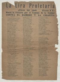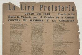 Hacia la victoria por el camino de la unidad contra el hambre y la cesantia : la lira proletaria. [Chile] : [Editor no identificado], 1949. 1 hoja ; 38 x 28 cm. .