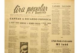 A Ricardo Fonseca / Severino Sepúlveda -- Homenaje a Ricardo Fonseca / Jose Cantaclaro -- A Ricardo Fonseca Aguayo / Jose Riel -- Pallando con el diablo -- Varios brindis / Palmira Sanchez -- El gran poeta Lazaro Salgado contesta al poeta Edmundo Lazo (ambos porteños) -- Mi laúd : a Pablo Neruda, el vate ausente/ Rafael Martinez Navia.