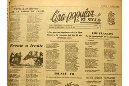 Frente a frente -- Jose Stalin y los pueblos / Agueda Zamorano -- A los poetas populares de La Lira llamo a la reunión del día 11 del presente mes / Sergio Valentin Mora -- Asi soy yo / José Cornejo Abarca -- Por la solución del conflicto del carbón / Jorge, Obrero del Carbón -- Los clásicos : de la ignorancia de los cantores / Rosa Araneda -- Patria amada / Edmundo Lazo.