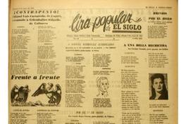 Frente a frente -- Recuerdo a los martires de Chicago / Abrahán Jesús Brito -- A Manuel Rodriguez guerrillero : homenaje en el 135 aniversario de su muerte / Sergio Valentin Mora -- Por el 1o. de Mayo / Camilo Rojas Cáceres -- Los enemigos de la paz / Edison Grandón-- Brindis por El Siglo / Julio Solis -- A una bella hechicera / Floridor Chandía -- Por los caminos del pueblo / Luis Polanco.