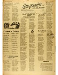 Frente a frente -- En un temblor de grado 10 / Edison Grandón -- Intervención de la Sociedad de Poetas Populares de Chile en el Congreso Continental de la Cultura / Agueda Zamorano -- La contesta de un dueño de fundo / José Larrín Deserrábal -- A Stalin / Julio Solís -- Respuesta a un dueño de fundo / Sergio Valentín Mora -- Los amores de un minero / Jorge, Obrero del Carbón.