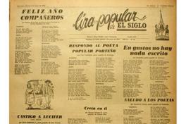 Castigo a lucifer : (verso bíblico) / Luis Paredes P. -- Esto es tener mala pata / Jorge, Obrero del Carbón -- Respondo al poeta popular porteño / Luis Castañeda -- Creía en ti / Manuel Urbano R. -- Chile no quiere guerra ni pacto / Chezsán -- En gustos no hay nada escrito / Alejandro, poeta popular de Santiago -- Saludo a los poetas / Rosalindo Farías -- Pido ingresar a la Sociedad de Poetas / Rosalindo Farías -- Para mi compañera / Luis Polanco.