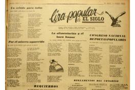 Por el minero aguerrido / Juan 2o. Placencia -- Requiebros / Luis Polanco -- La alimentación y el buen humor / Jorge Obrero del Carbón -- Congreso Nacional de Poetas Populares / José Riel -- El alma de un fusilado / Ricardo González -- Abuso de los gobiernistas / Rosa Araneda.