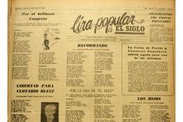 Libertad para Clotario Blest / Marcelina Oviedo -- Recordando / Victaliano Nova -- Por la Lira de "El Siglo" / Lázaro Salgado -- Canto de amor a mi ciudad / Ricardo González -- Los hijos / Pedro González -- Los cuatro piques / Darío Lotino.