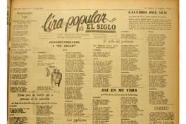 Versos para un hombre que se preocupa de los pelambres / Juan de la Cruz Herrera -- Canto al campesino / C. Castillo -- Agradecimientos a "El Siglo" / L. -- Siempre adelante / Máximo Ramírez C. -- Los problemas del obrero del calzado / Francisco Astroza -- El techo del proletario / Gregorio Ponce -- Asi es mi vida / Flor María -- Saludos del Sur / René del Cerro.