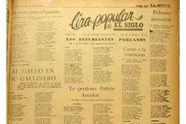 El gallo en su gallinero : verso a lo divino / Agustín Salas -- Al poeta iquiqueño Arturo Carrasco / M. Pinto -- Los estudiantes peruanos / Indio Mora -- Te perdono, Rubén Amador / Hugo Amador -- Canto a la redención / Camilo Rojas C. -- Polonia inmortal / Máximo Ramírez.