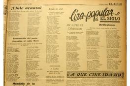 ¡Chile avanza! [artículo] / Carmelo Reyes Morales. Santiago : El Siglo, 1955. El Siglo (Santiago, Chile). -- (julio 13, 1955), página 5 1 hoja ; 57 x 40 cm. .