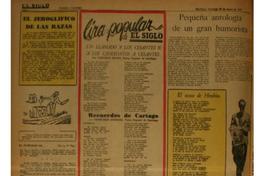 Recuerdos de Cartago / Francisco Astroza -- Visitas en "El Ingenio" / Antonio Villatoro -- De la poesía popular chilena : La Cunita.