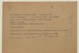 Don Rafael Fernández Navia [manuscrito] / [Diego Muñoz]. [Chile] : [Editor no identificado], [1930?] 1 hoja ; cm. .