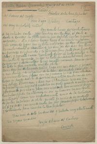 El poeta explica su imposibilidad de asistir al Congreso [de Poetas Populares] en Santiago. Envía saludos a sus colegas y señala que el poeta Placencia asistiría y podría representarlo.