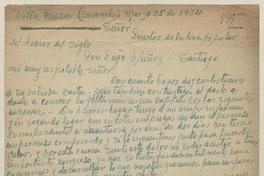 Villa Mora, Coronel, Chile [al] Director de la Lira popular Carta, 1954 marzo 25 [manuscrito] Jorge Obrero del Carbón.