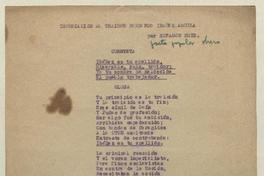 Imprecación al traidor Bernardo Ibañez Águila [manuscrito] / por Sofanor Ruis. [Chile] : [Editor no identificado], [1950?] 2 hojas sin numerar ; cm. .