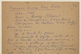 Francisco Javier Díaz Ávila [manuscrito] / [Chile] : [Editor no identificado], [1952?] 1 hoja sin numerar ; cm. .