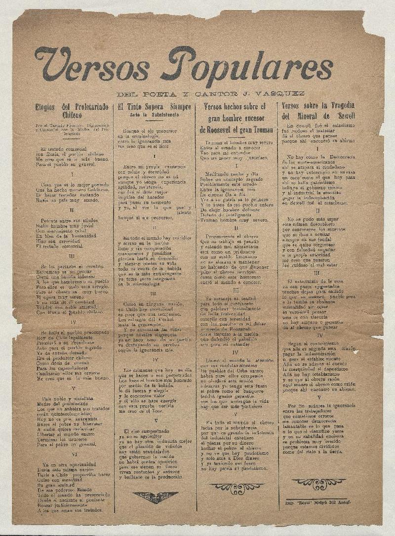 Versos populares del poeta y cantor J. Vasquez.