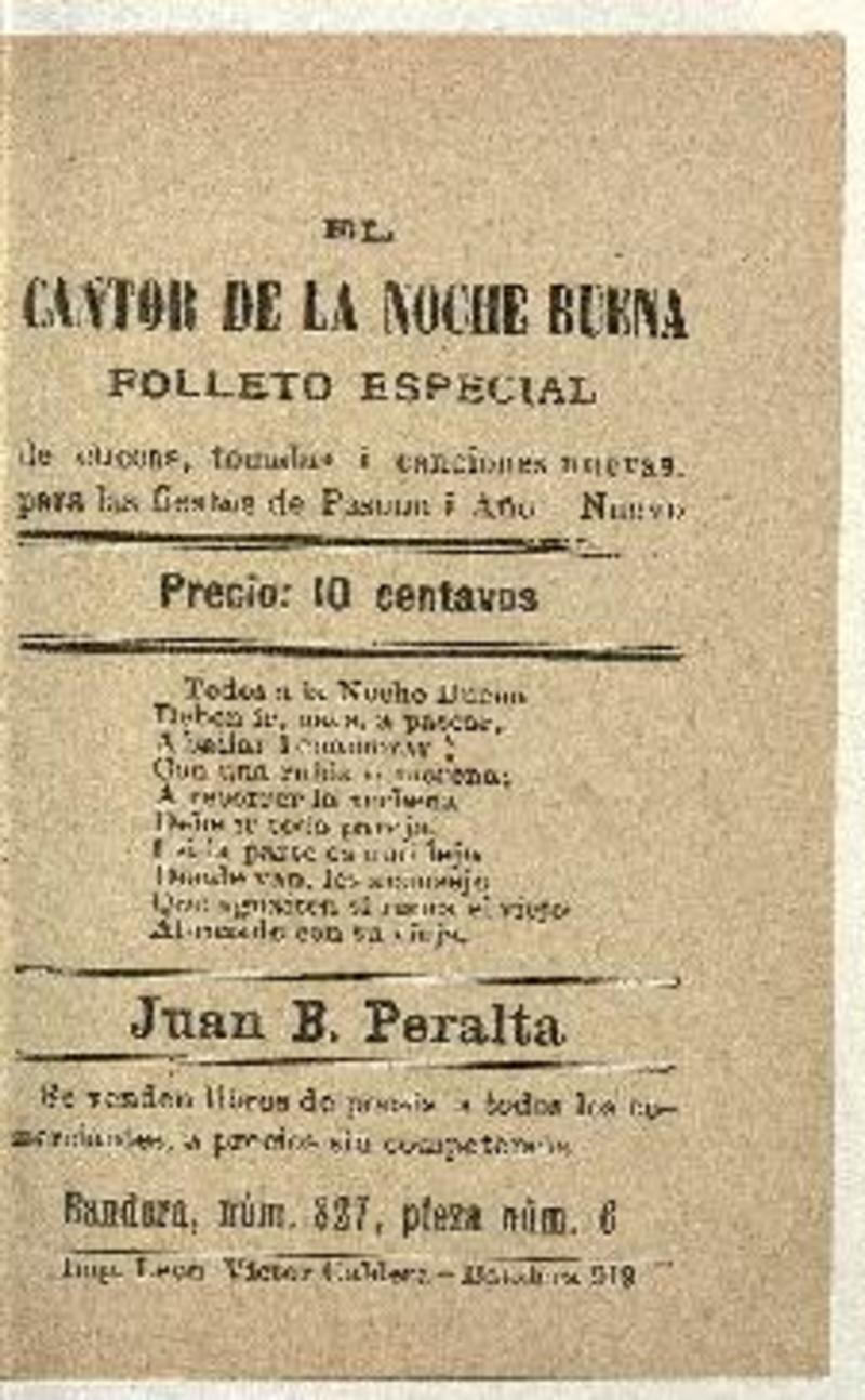 El Ruiseñor nacional : folleto especial de canciones, tonadas, cuecas, zarzuelas, etc., etc. por Juan B. Peralta.