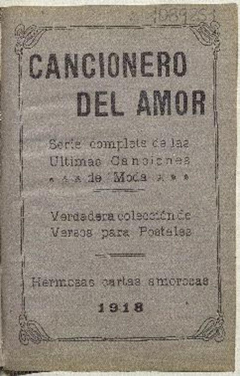 Cancionero del amor : serie completa de las últimas canciones de moda : verdadera colección de versos para postales : hermosas cartas amorosas.