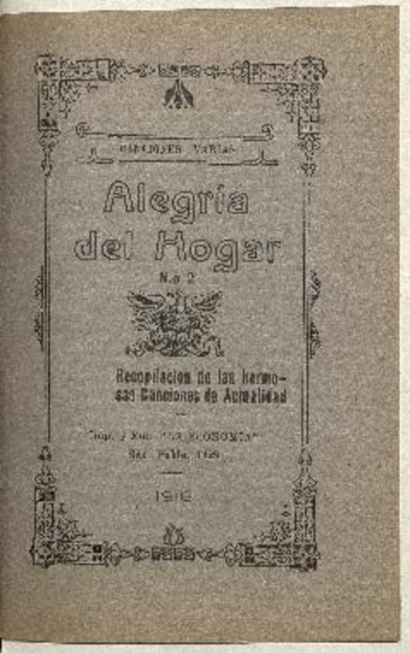 Alegría del hogar : recopilación de las hermosas canciones de actualidad.