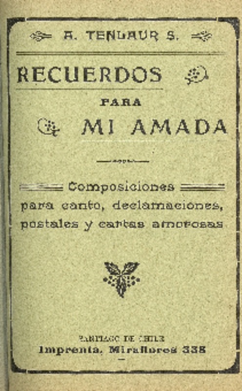 Recuerdos para mi amada : composiciones para canto, declamaciones, postales y cartas amorosas por A. Tenlaur S.