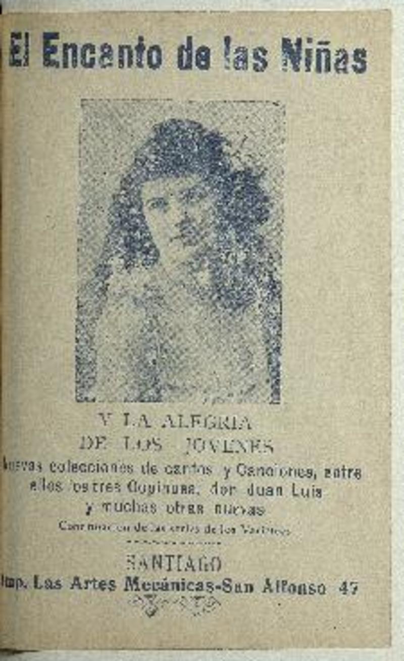 El Encanto de las niñas y la alegría de los jóvenes : nuevas colecciones de cantos y canciones, entre ellos los tres copihues, don Juan Luis y muchas otras nuevas : continuación de las series de las Varietees.