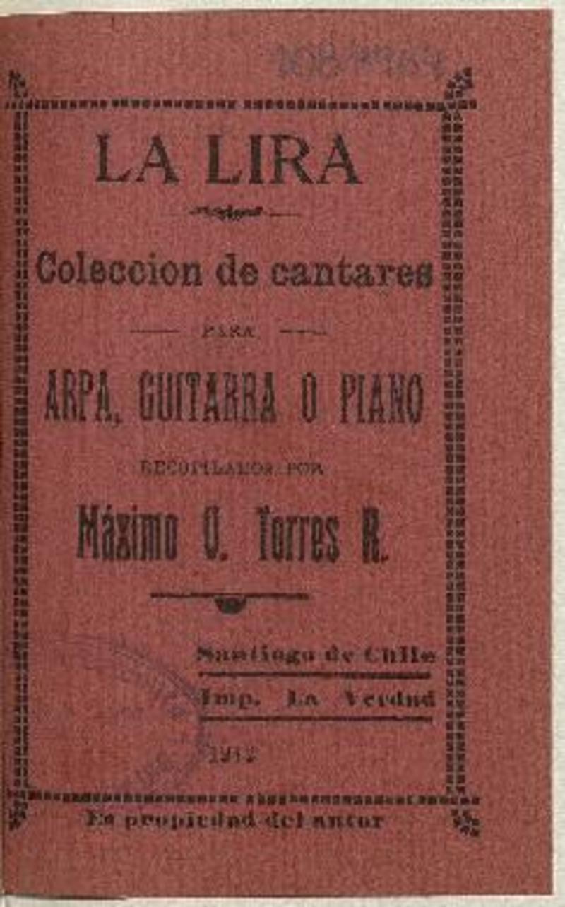 La Lira : colección de cantares : para arpa, guitarra o piano recopilados por Máximo V. Torres R.
