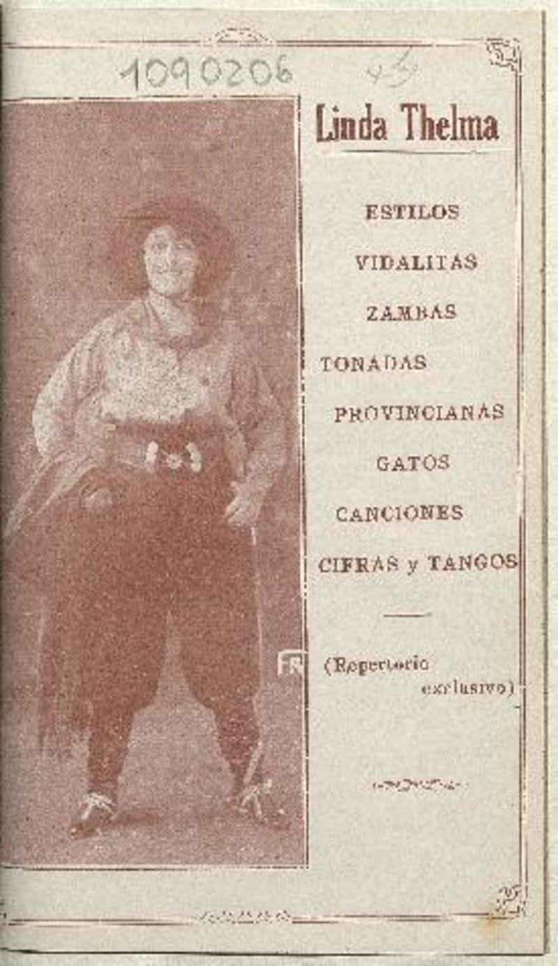 Estilos, vidalitas, zambas, tonadas, provincianas, gatos, canciones, cifras y tangos : (repertorio exclusivo) Linda Thelma.