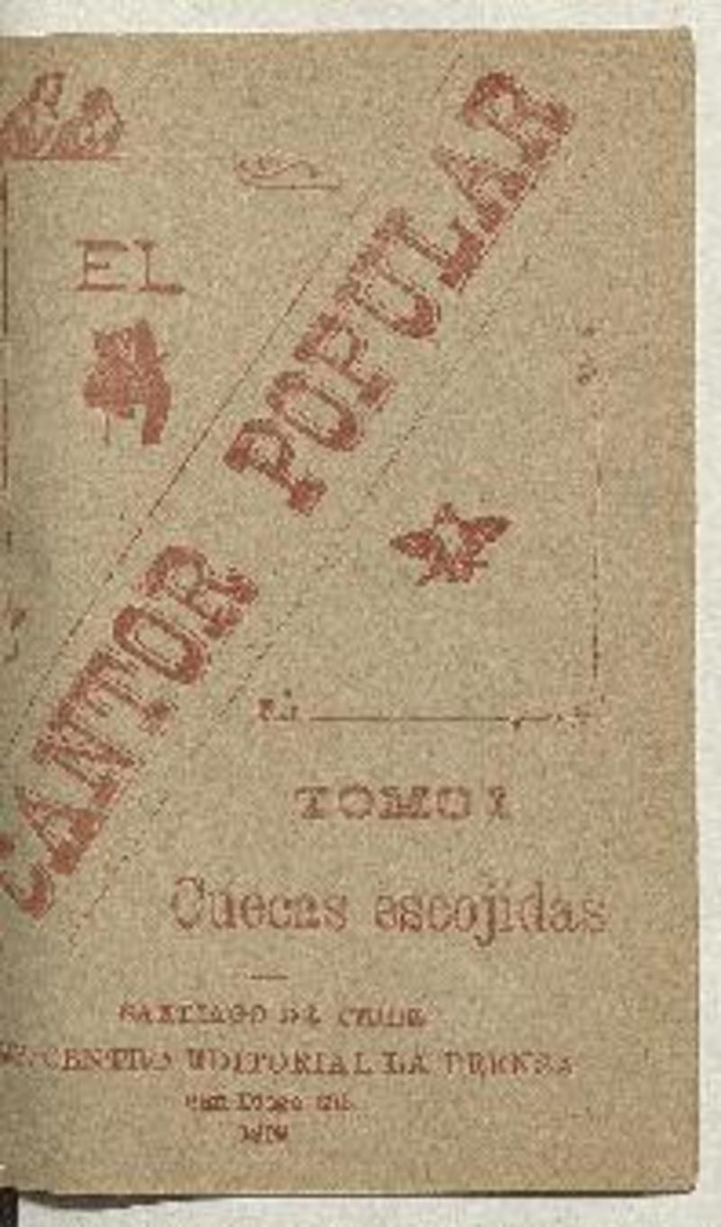 La cantora popular : canciones, cuecas, tonadas, parabienes i esquinazos Juan B. Peralta.