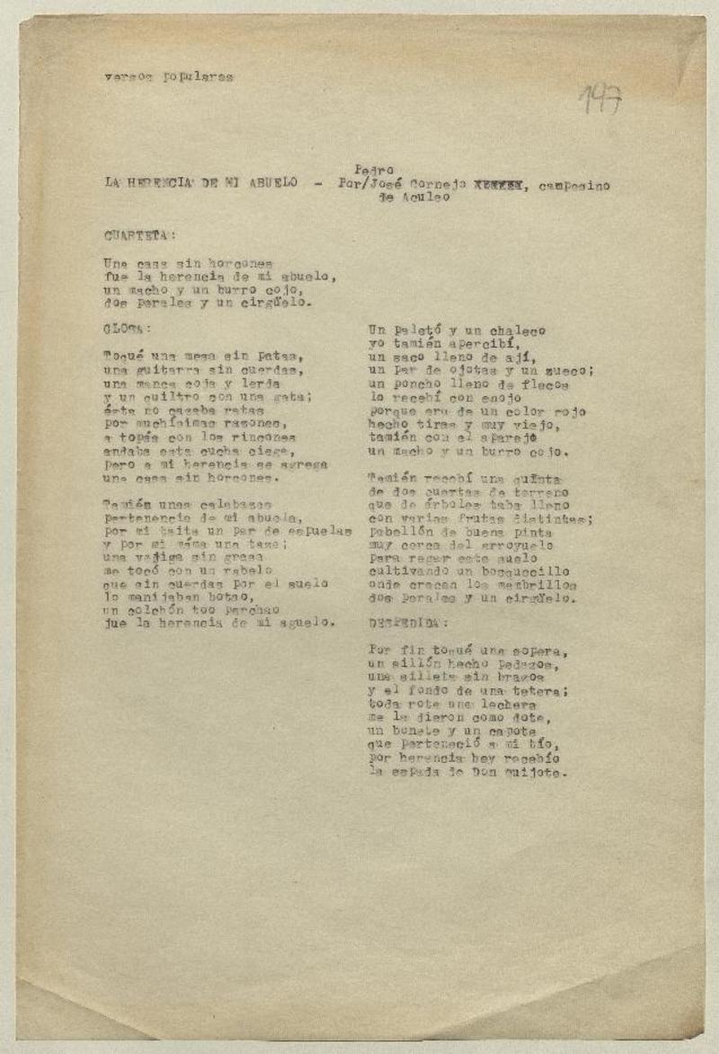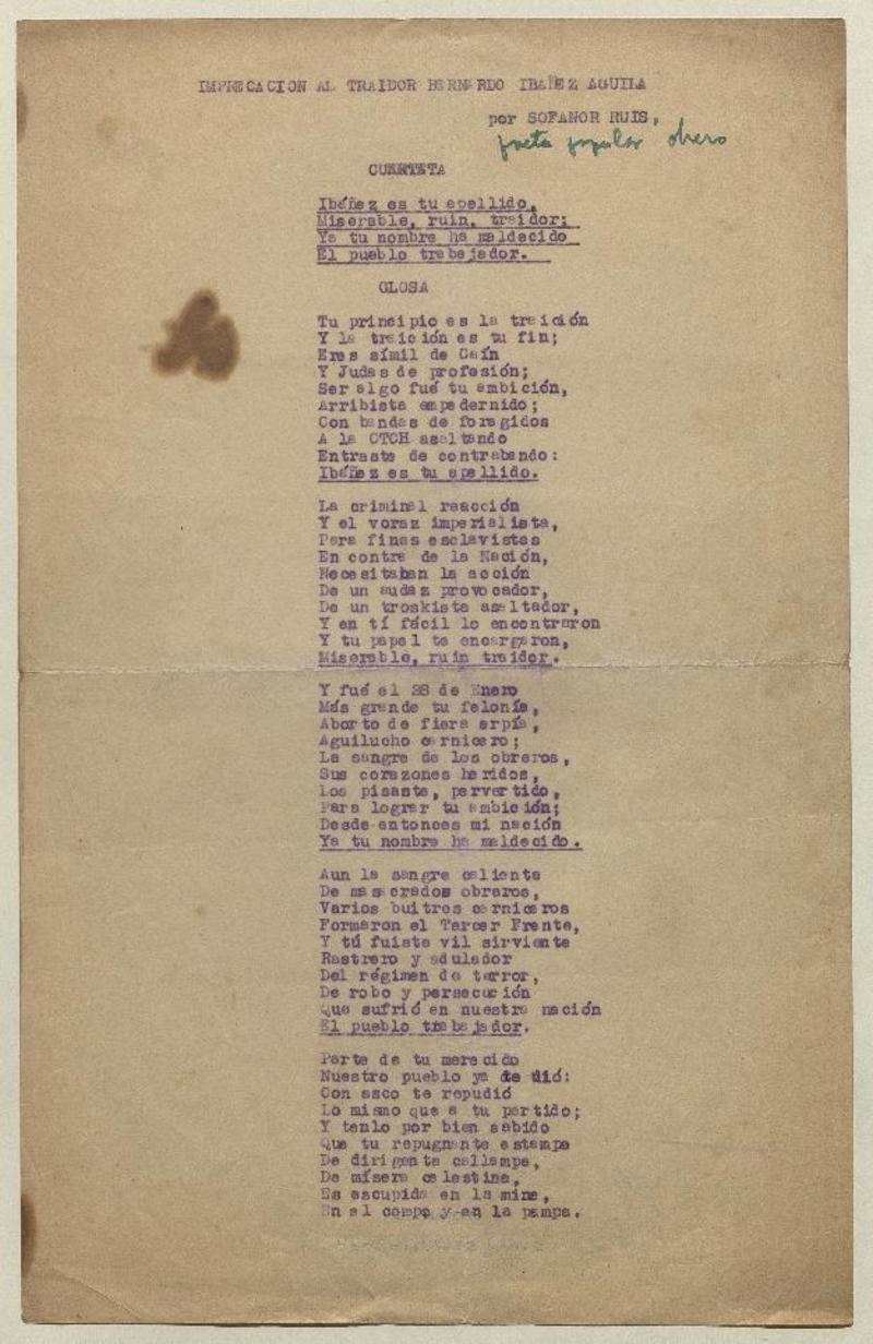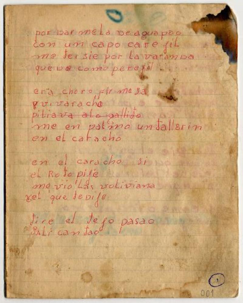 Versos populares [manuscrito] Nancy Fernández Toro.