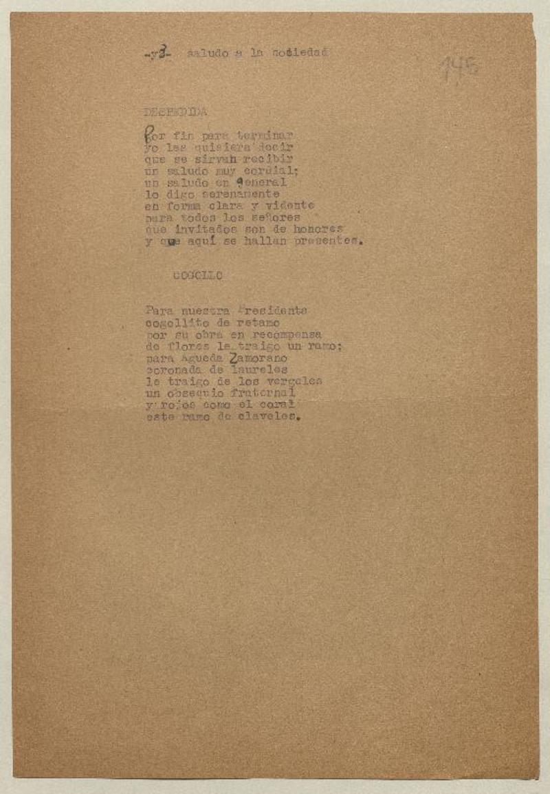 Saludo a la sociedad [manuscrito] [Roberto Bugueño].