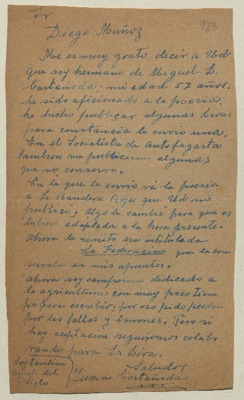 Muñoz, Diego - Correspondencia - Autores chilenos - Manuscritos chilenos - Castañeda, Juan