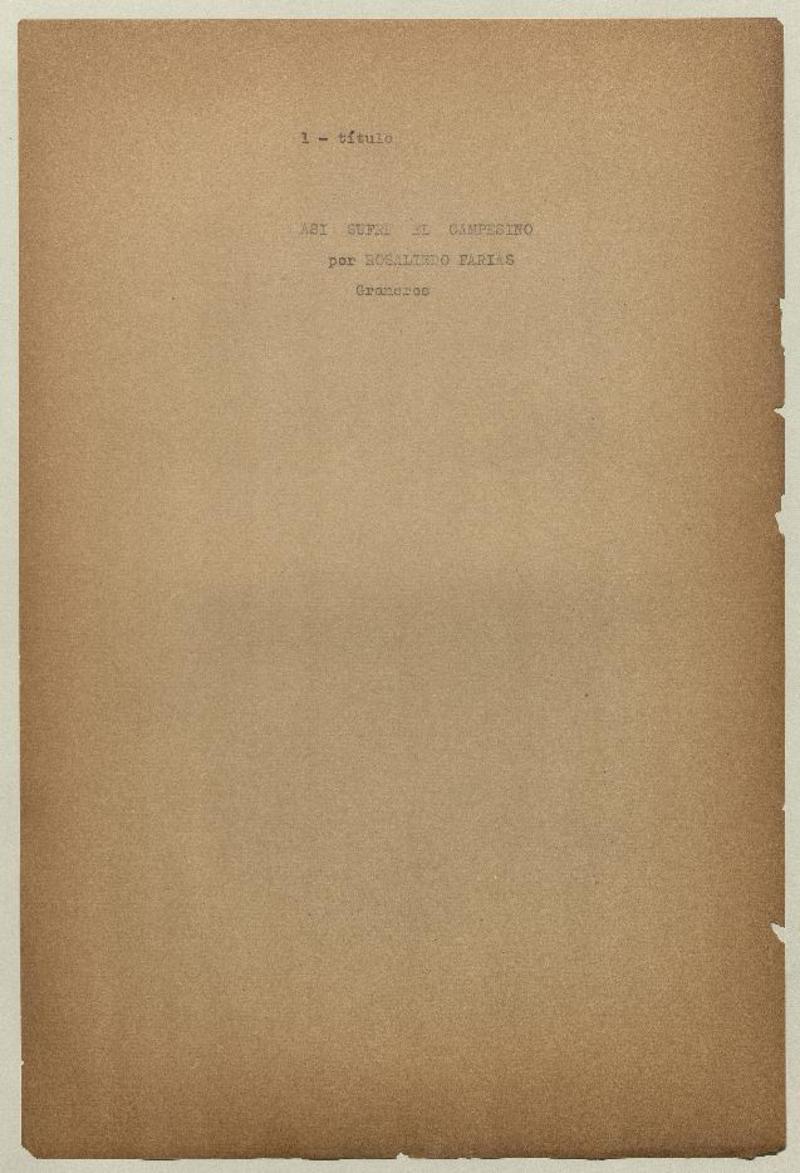 Así sufre el campesino [manuscrito] por Rosalindo Farías.