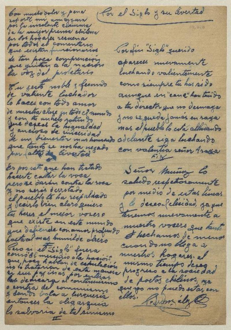 Por El Siglo y su livertad [manuscrito]