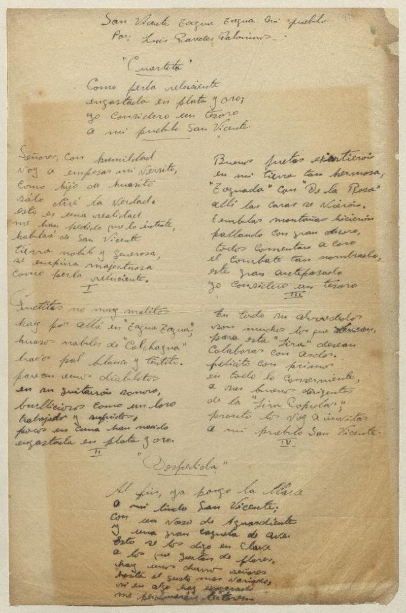 Manuscritos chilenos - Autores chilenos - Castañeda, Miguel Luis - Correspondencia - Cogotí (Chile) - Décimas chilenas - Región de Coquimbo (Chile) - Valenzuela, Inés - Poesías chilenas - Poesía - Poesías populares chilenas