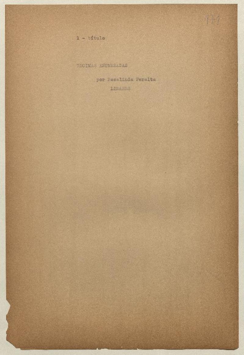 Décimas enumeradas [manuscrito] Rosalinda Peralta.