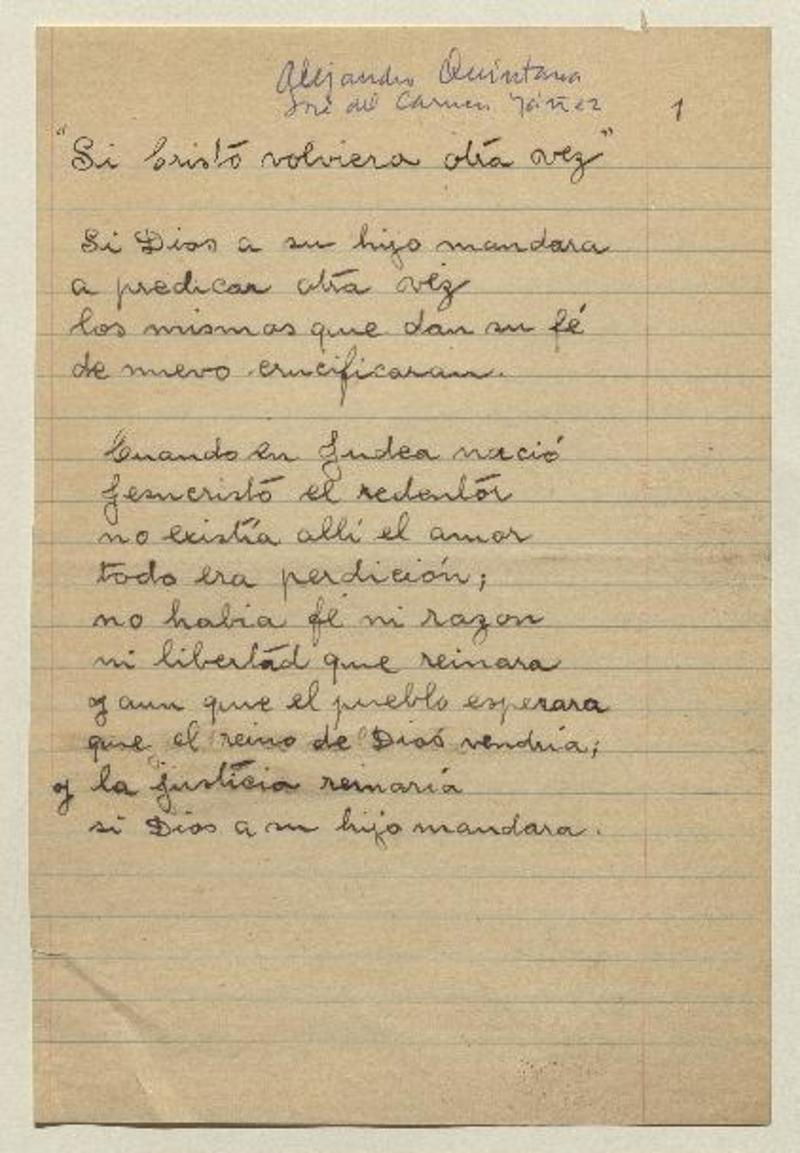 Si Cristo volviera otra vez [manuscrito] Alejandro Quintana y José del Carmen Yáñez.
