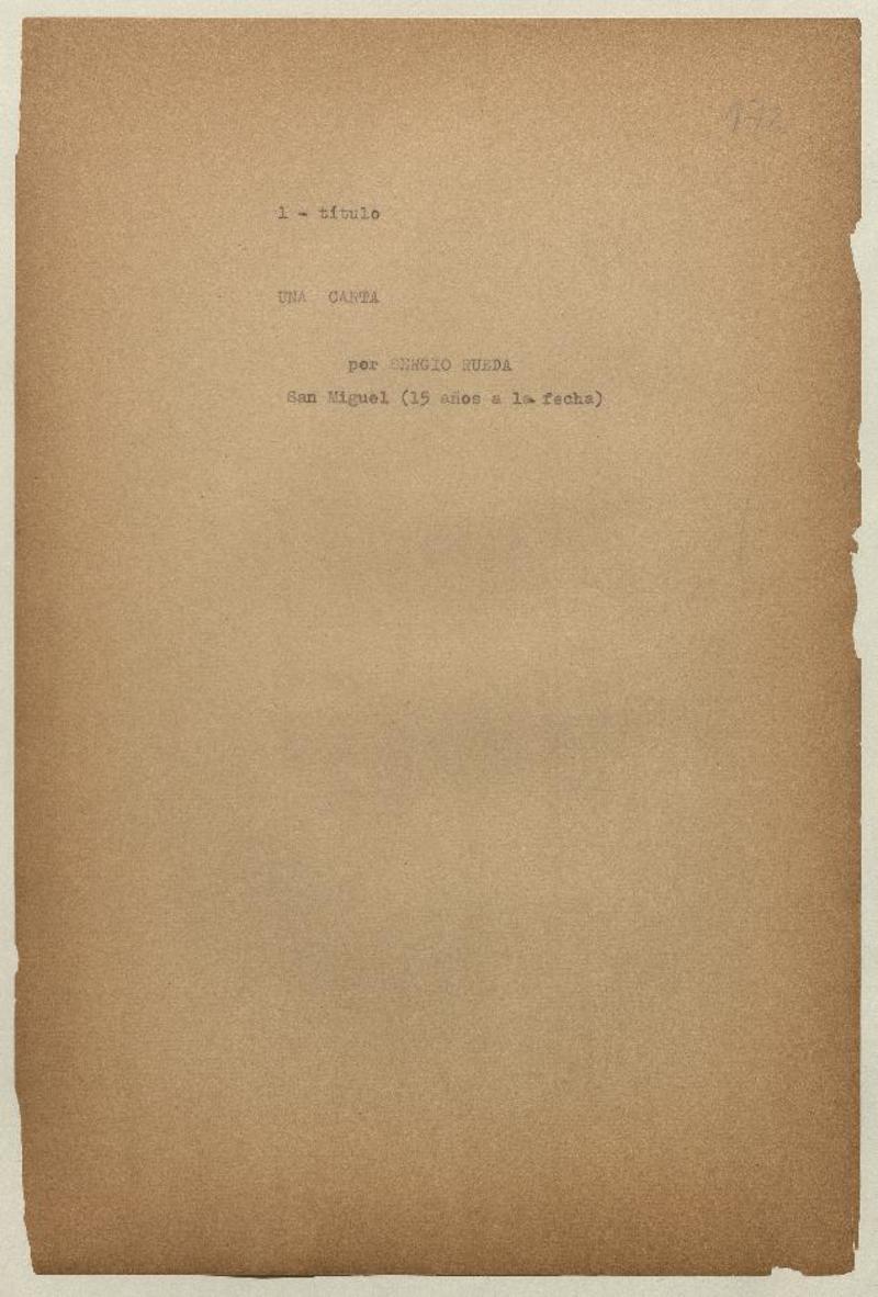 Una carta [manuscrito] por Sergio Rueda.