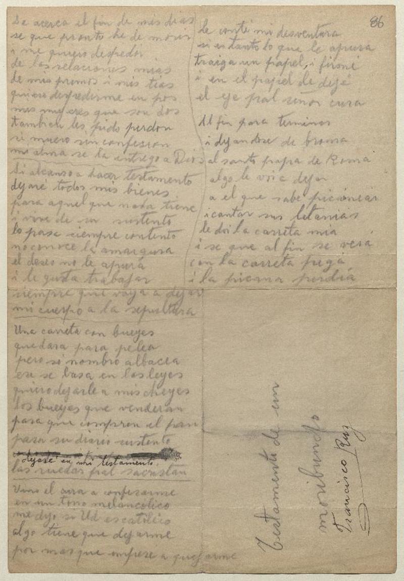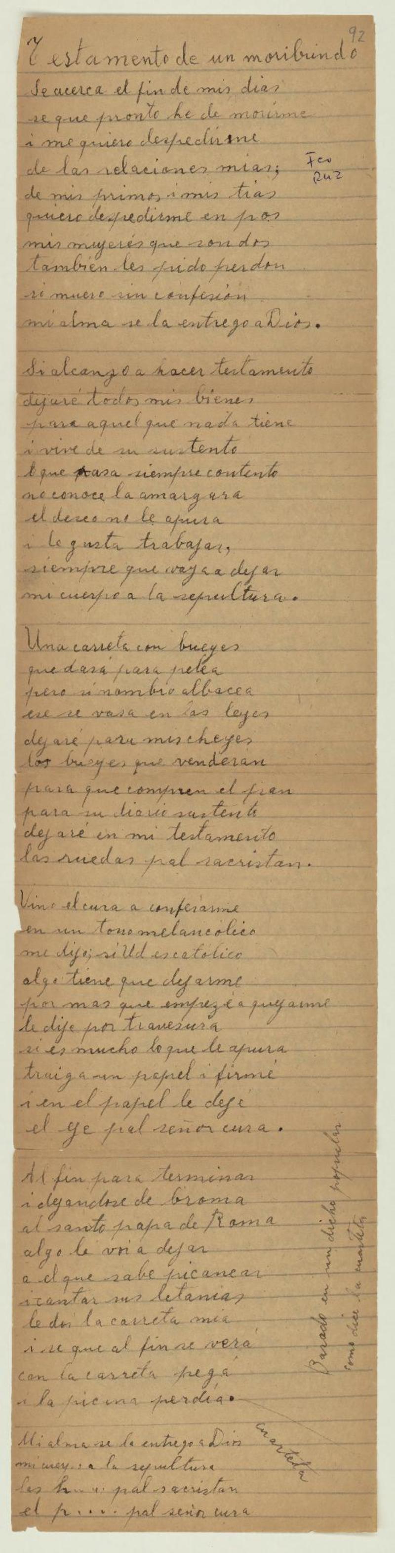 Testamento de un moribundo ; Mi candidatura a la presidencia [manuscrito] Fco Ruz.