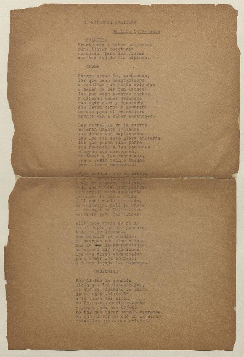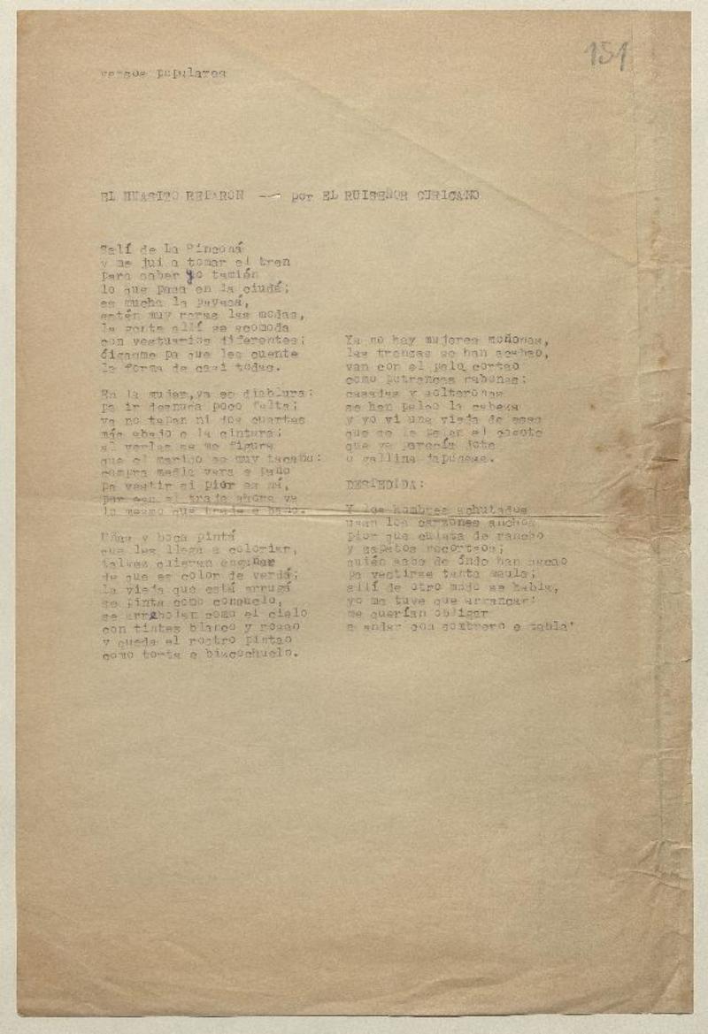 El huasito reparón [manuscrito] por El Ruiseñor Curicano.
