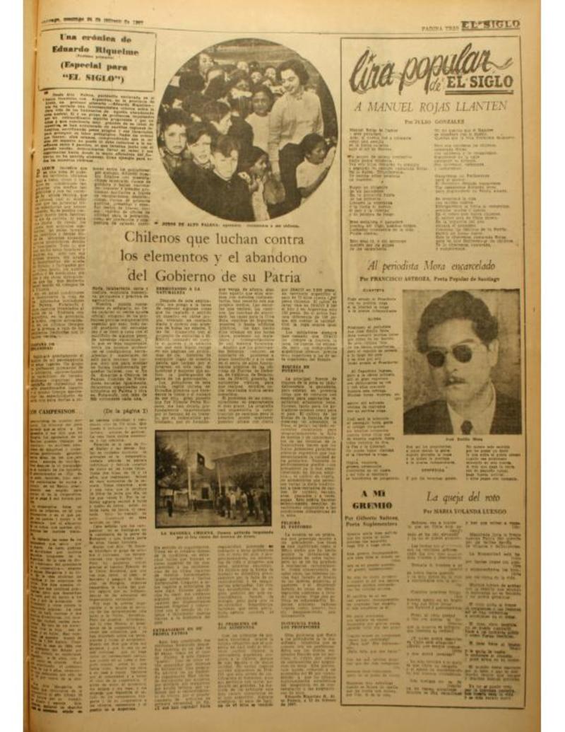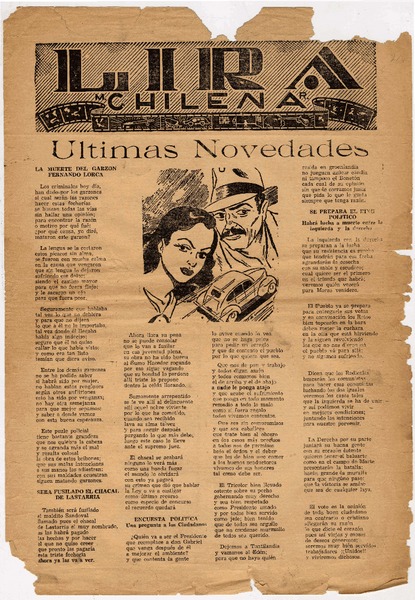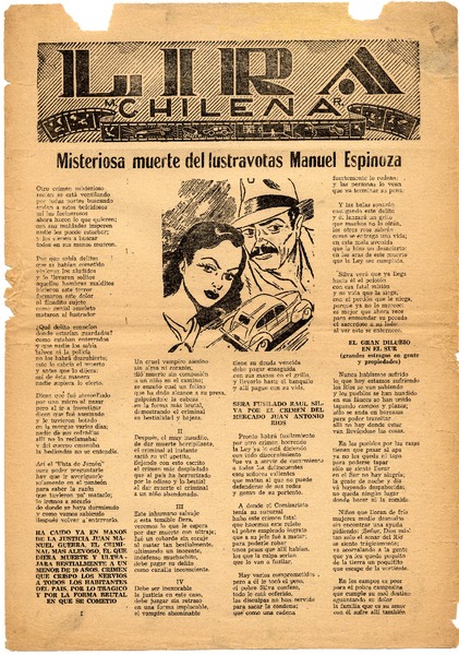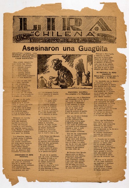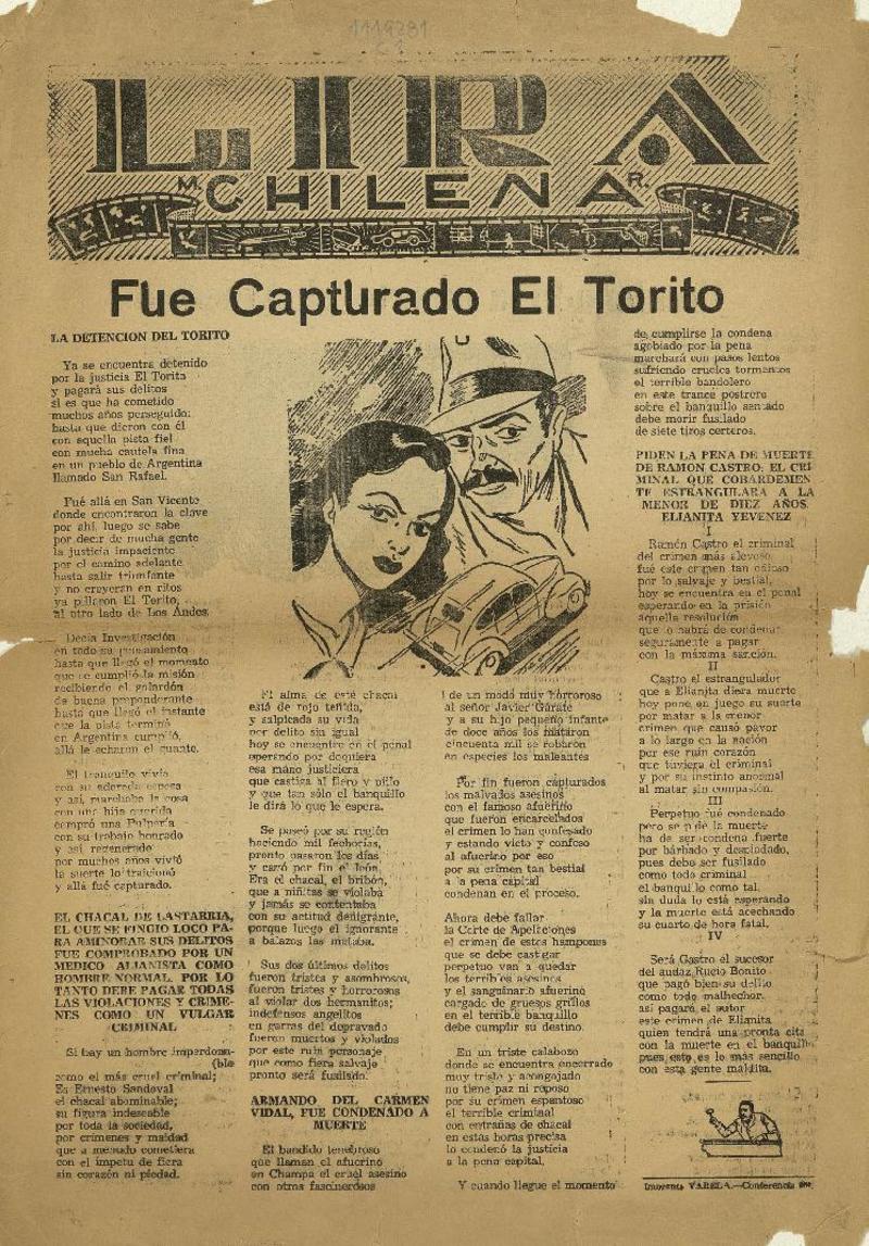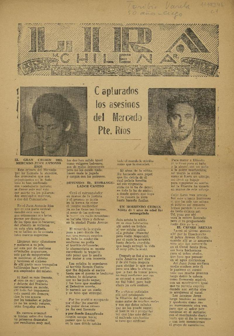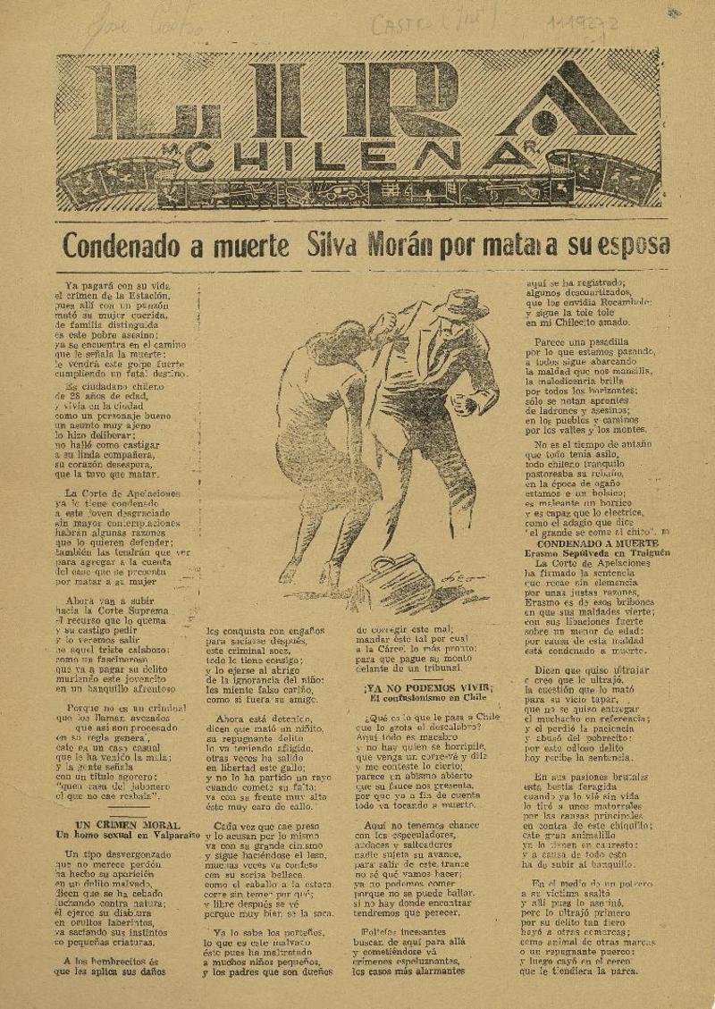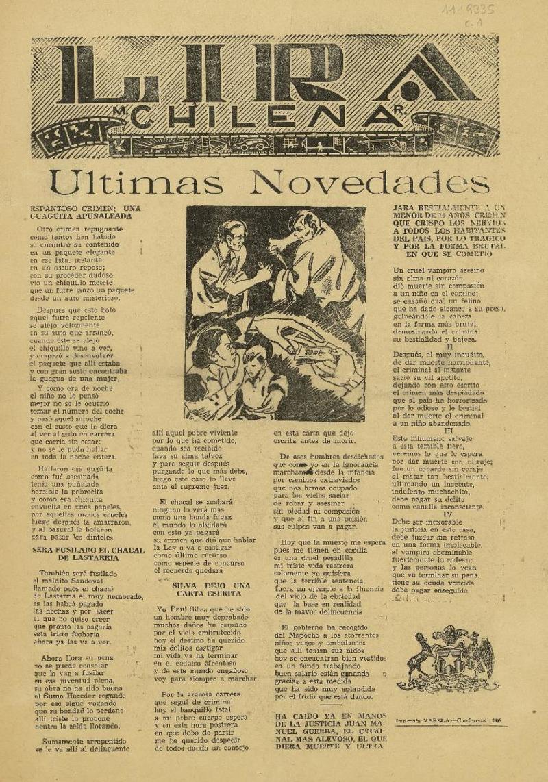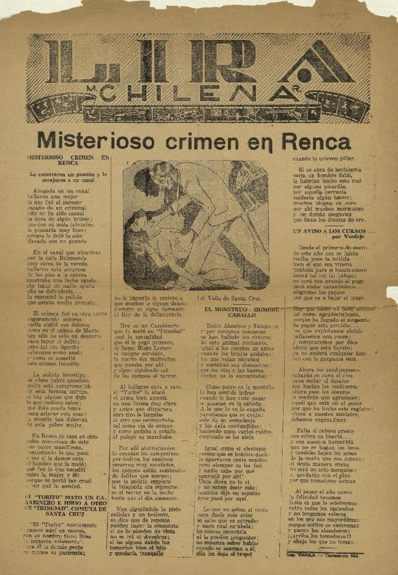 Asombroso hecho en Talca : la señorita que dió a luz un hijo sin estar embarazada ; Homicidio en Valparaiso en la poblacion Vergara : un austriaco mató a un chileno Daniel Meneses.