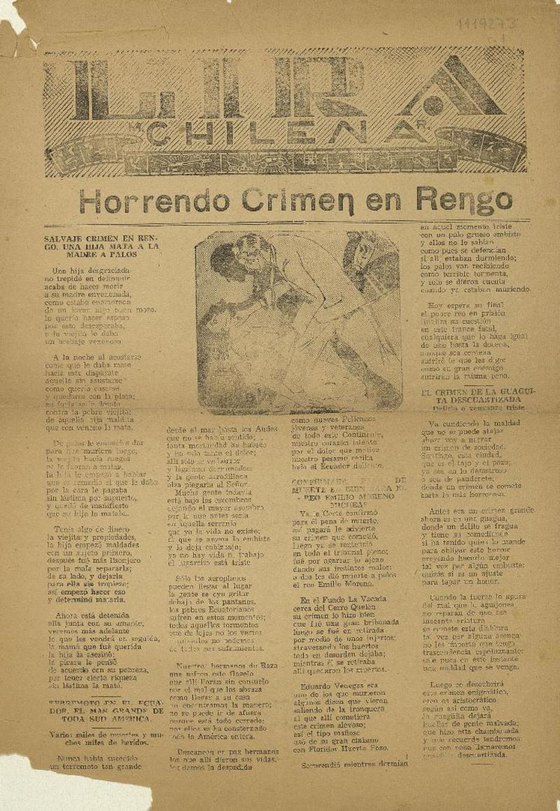 Vista de los nuevos municipales ; Espantoso crímen una mujer destrozada en Valparaiso : la lira popular núm. 63 Juan B. Peralta.
