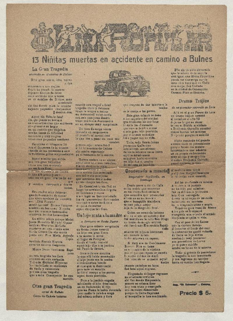 13 niñitas muertas en accidente camino a Bulnes : lira popular.