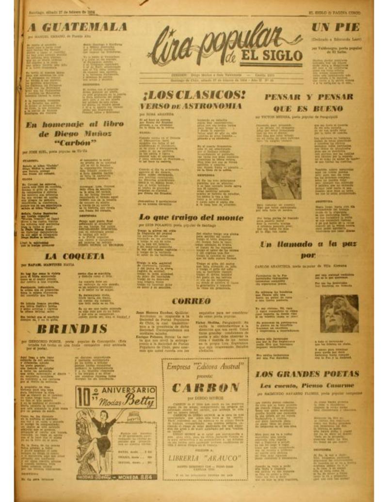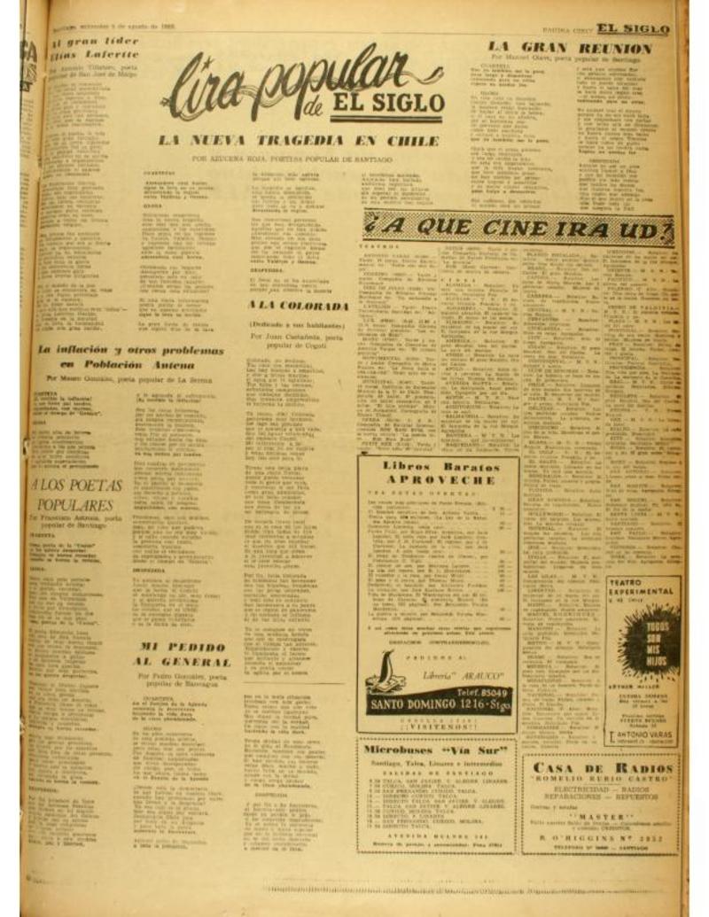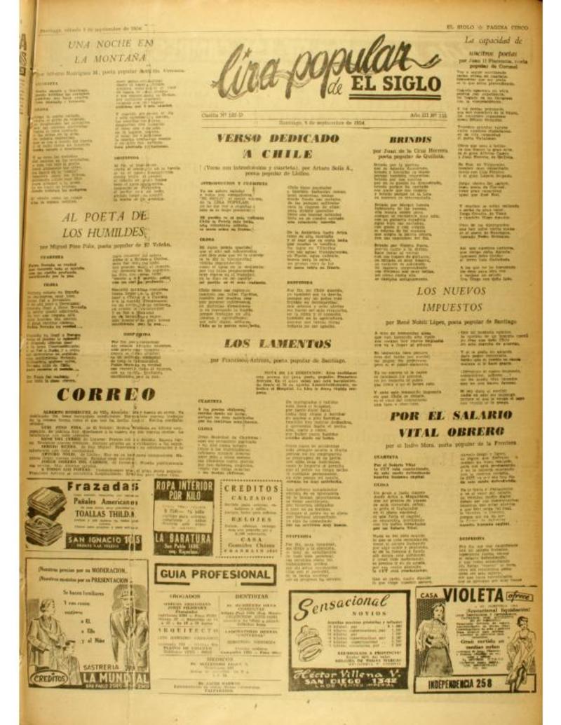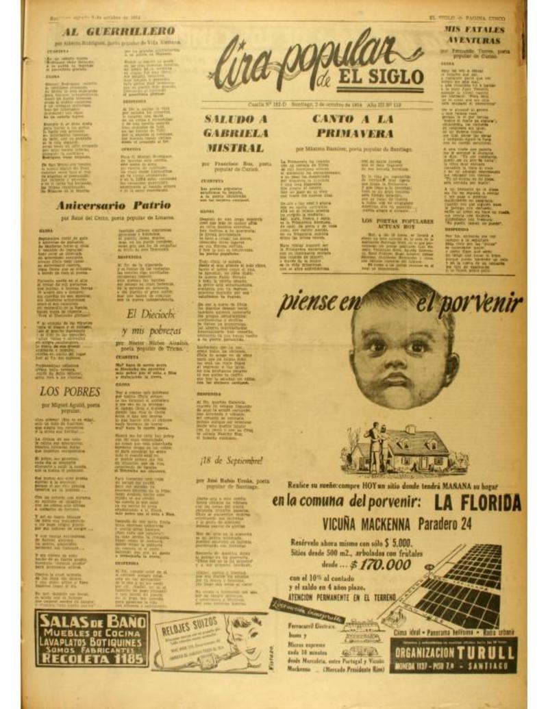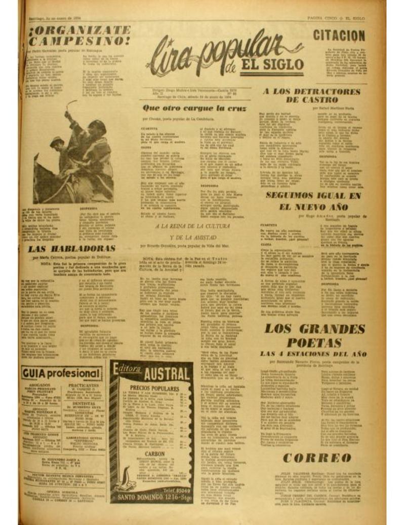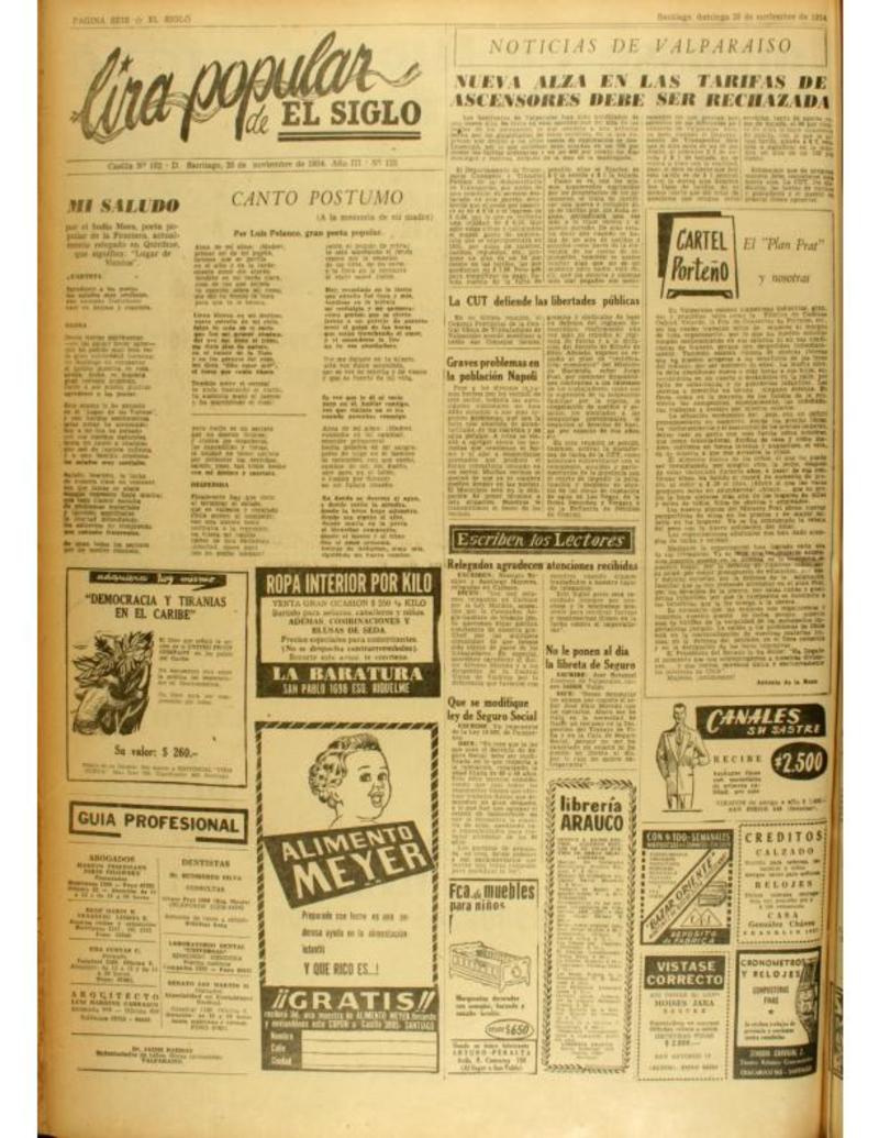 Versos Chilenos ; La construcciòn del Cuartel de Lautaro ; El hundimiento de un vapor en el Norte ; El fin de la crisis ; La aparición del poeta de Bío Bío Esteban Araya L.