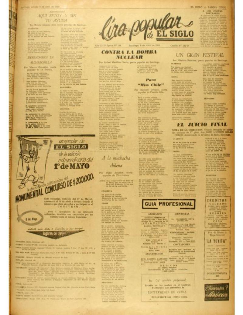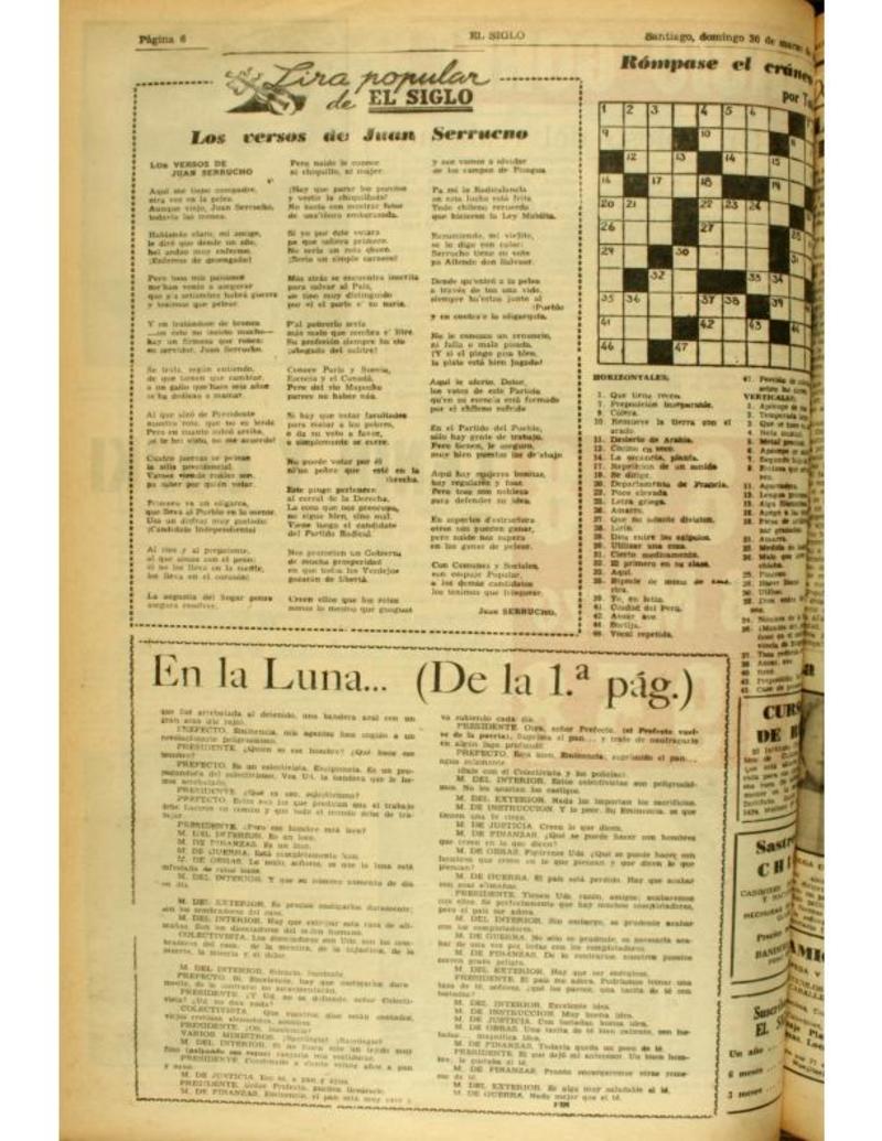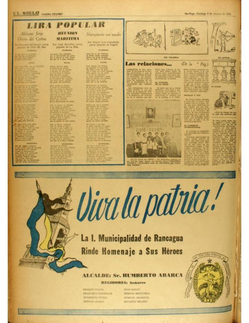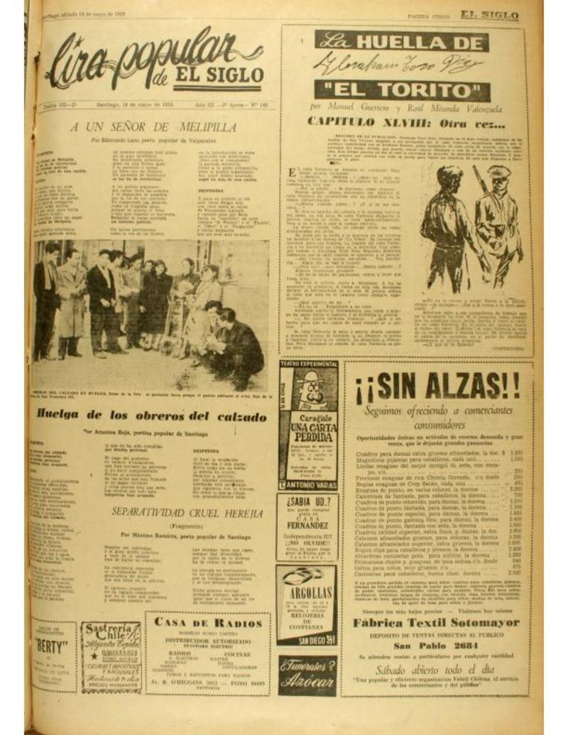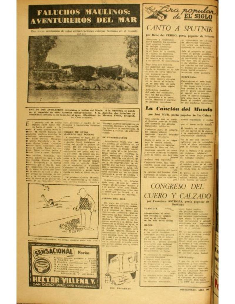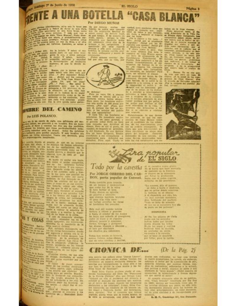 Versos Chilenos ; La construcciòn del Cuartel de Lautaro ; El hundimiento de un vapor en el Norte ; El fin de la crisis ; La aparición del poeta de Bío Bío Esteban Araya L.